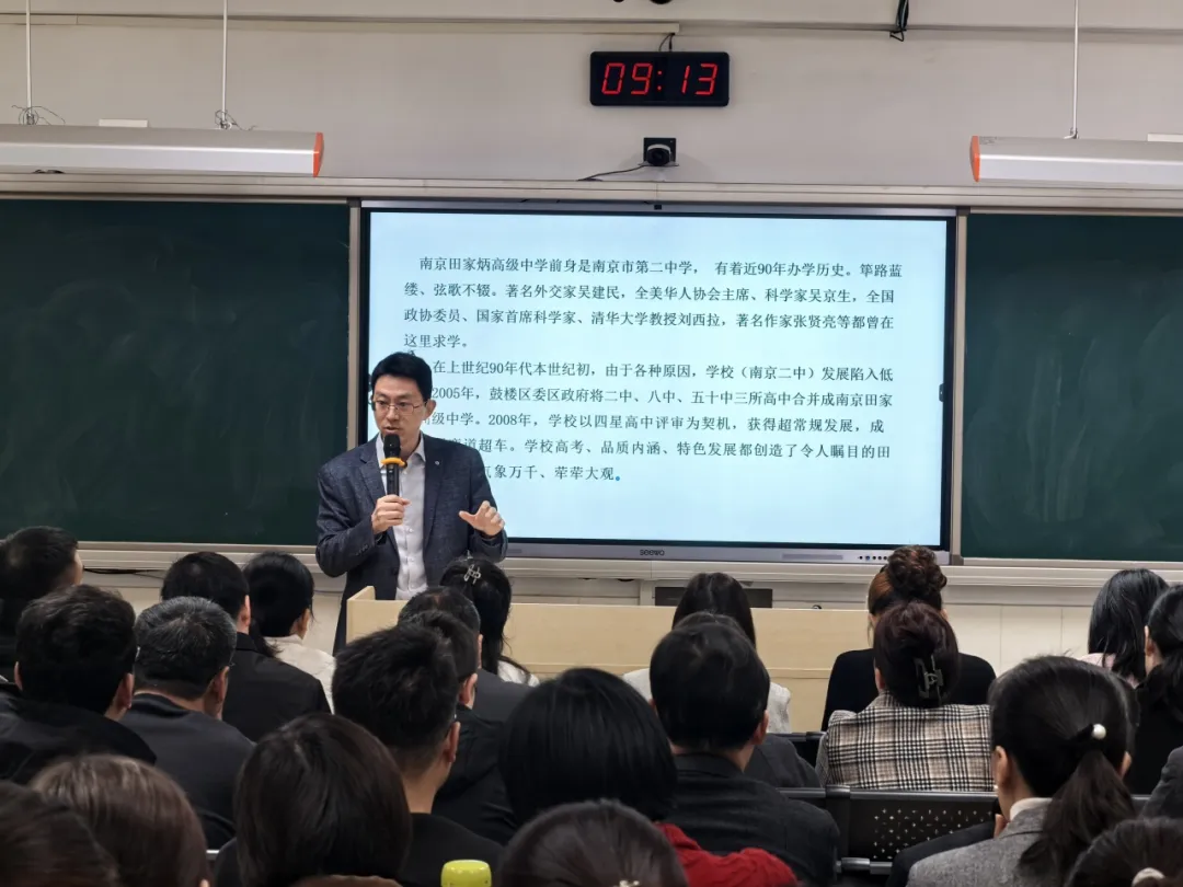 盛徽副校长系统介绍了学校的历史沿革、课程设置与办学特色,帮助教师们深入理解江苏高中教育的实践脉络。